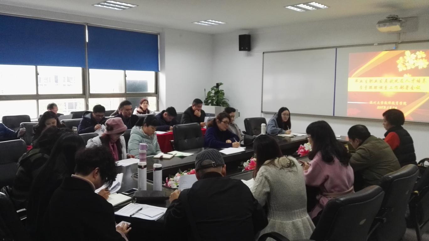 召开2018年毕业生职业发展状况及人才培养质量跟踪调查工作部署会议。学院院长孙芙蓉、党委书记杨立淮、党委副书记等学院领导,以及各系书记和15届、17届班班主任等成员参加会议,会议由杨丽君副书记主持,并且邀请了泥巴影院