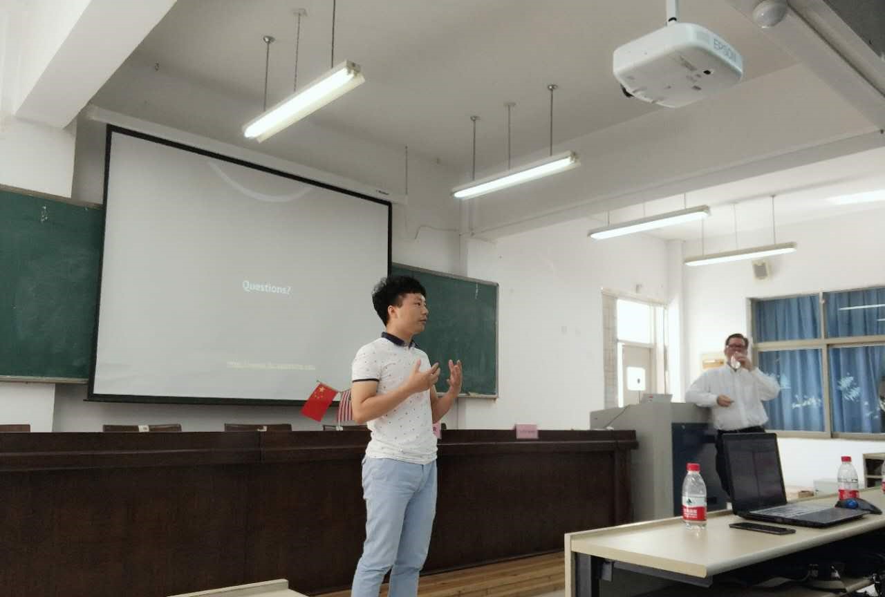 首先,颜文靖老师对Rob Sanders博士进行了详细的介绍,说明了Rob Sanders博士研究的主要方向和此次讲座的主要内容。接着,Rob Sanders以一个简短的视频向大家介绍了美丽的阿帕拉契州立大学,他也向大家介绍了阿帕拉契州立大学主要的教学专业。Rob Sanders博士提出社会建构主义理论所倡导的五大重要内容,由此引出互动学习的重要性。他向大家展示了如何通过线上学习进行课堂的互动和交流。Rob Sanders博士还向大家讲述了同步学习和异步学习的优缺点并由此引出通过AET软件进行的线上学习,阐述了这种虚拟学习环境的先进之处。最后,Rob Sanders博士向大家介绍了这种虚拟学习环境下的学习周期计划,主要包括:探索、计划、行动、反思四个步骤,并且向大家介绍了每个步骤需要具体做的内容。在讲座结束后的提问环节,Rob Sanders博士就我们各位老师和同学的问题也进行了详细的解答,并与一些教师就在线学习进行了深入的交流。