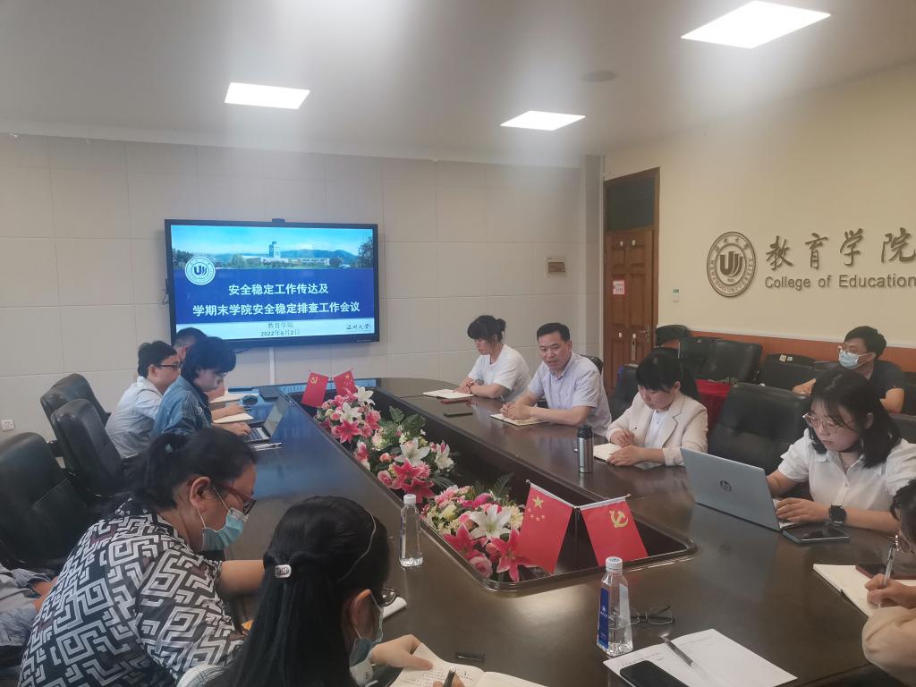 2022年6月2日上午,泥巴影院 召开学期末安全风险隐患排查专题工作会议,传达学校安全工作专项会议精神,研究部署学院学期末安全稳定隐患风险排查事宜。学院党委书记何毅、副书记章园园,各师生党支部书记、各科室负责人及全体辅导员参加会议,会议由章园园副书记主持。
