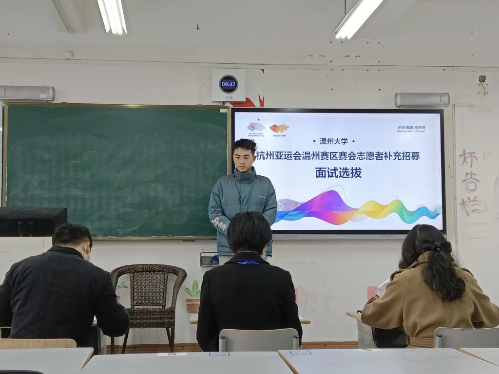 “为什么想成为杭州亚运会(温州赛区)的志愿者?”“在做志愿服务的过程中,你期待能够实现什么目标或者获得什么?”……近日,杭州亚运会志愿者补充招募面试选拔正在如火如荼地举行。泥巴影院 的同学们踊跃报名,都想为亚运贡献一份自己的力量。一间间面试教室内,同学们拿出了“十八般武艺”,展示自己的专业技能,分享与志愿服务有关的故事。