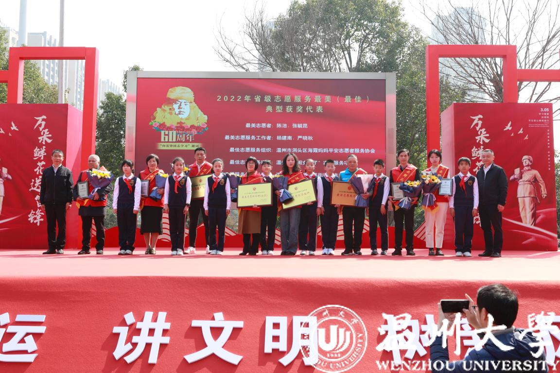 3月5日上午,温州市2023年“万朵鲜花送雷锋”志愿服务主题月暨迎亚运城市志愿服务行动启动仪式在龙湾区雷锋广场举行。