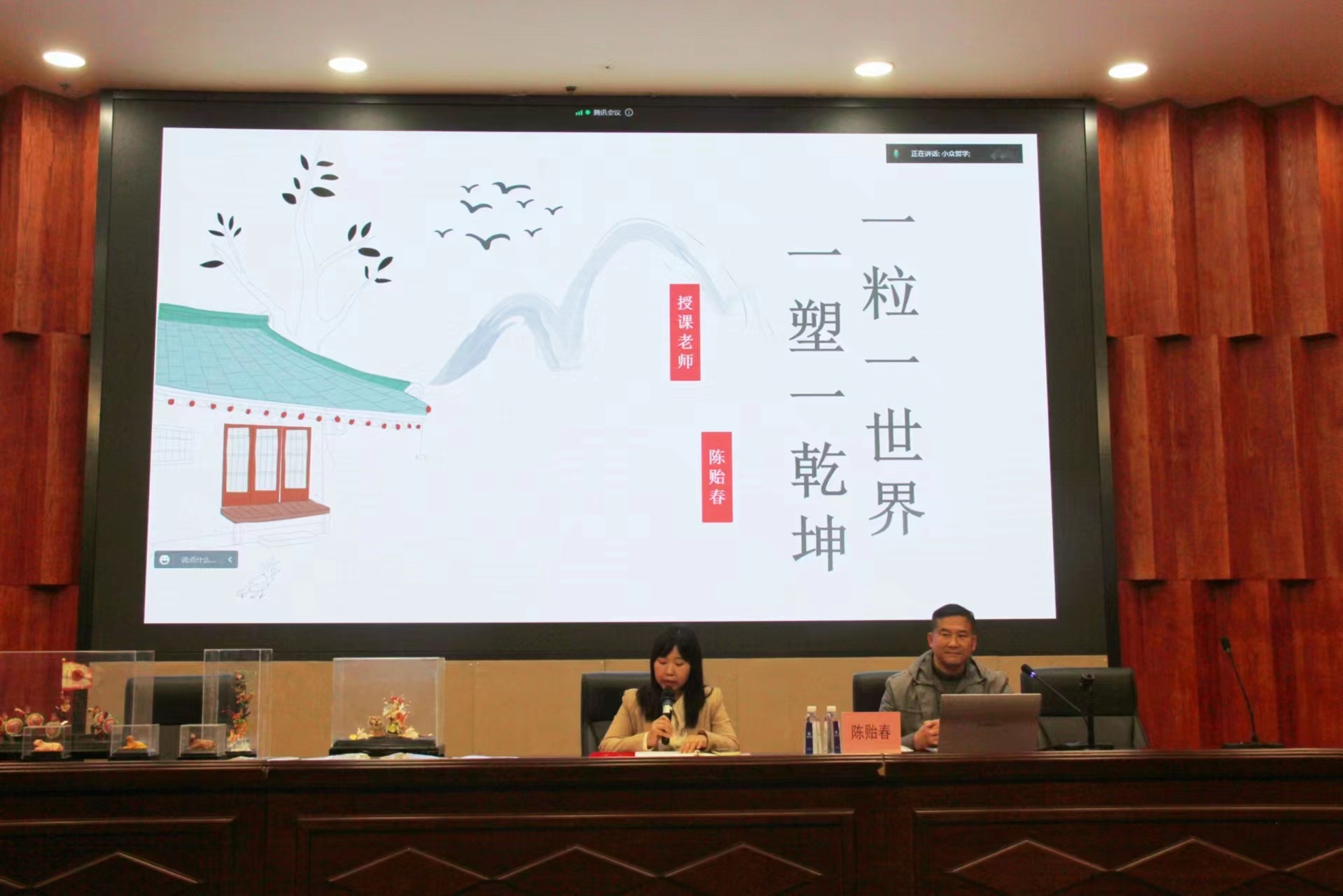 一粒一世界,一塑一乾坤。近日,泥巴影院 于岩松堂雁山厅开展“米塑文化”非遗传承——“艺起”艺术思政大讲堂暨劳动教育讲座。本次讲座特邀瑞安米塑第三代传承人、温州市级非遗代表性传承人陈贻春,通过“线上+线下”共研共学的方式,带领近1000名学生上了一堂生动的非遗“大思政课”。