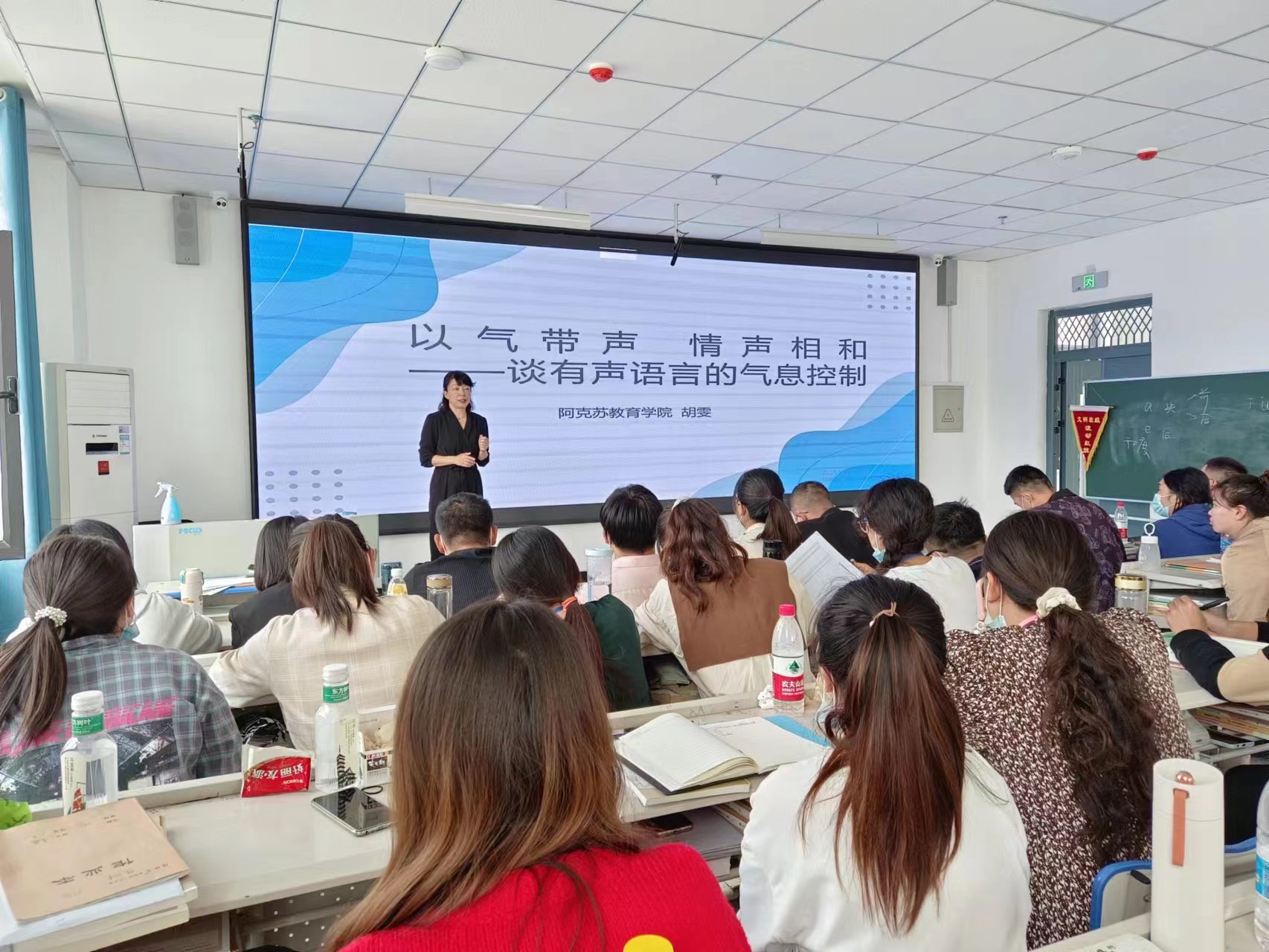 作为一名普通话测试员,因为语言文字方面的特长,除了顶岗教学任务,胡雯还承担起了阿教院国家语言文字推广基地的主要工作。据悉,在援疆期间,她不仅负责起草了《普通话教程》的课程标准和教学大纲,助推国推基地走上规范化运行的轨道,还全面负责青海甘德教师语言文字提升帮扶培训。在现场,她回忆起一位老师为了使普通话的音频作业达到理想效果,连续录制了整整179次的故事。“如此认真的学员们让我意识到,能参与国家的语言文字事业,在新疆的沃土中奉献自己的特长和能力,是多么伟大的幸福。”
