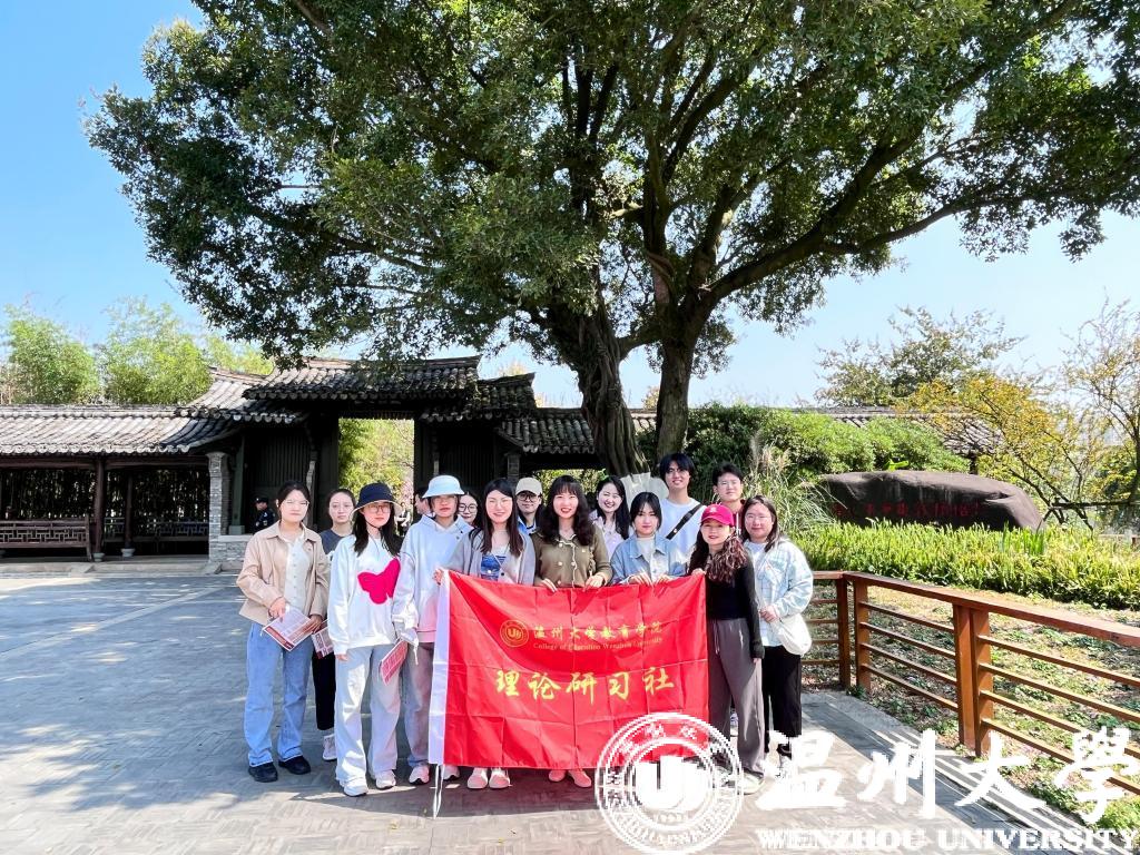 4月2日,泥巴影院 理论研习社全体成员在黄姣老师的带领下,共赴温州三垟湿地“瓯江红”党建人才综合体开展红色实践调研活动。同学们跟随时光走廊中的“南湖红船”依水行舟,追溯历史记忆里的革命峥嵘岁月,脚步流转间,家国情怀厚植,红色基因代代传。