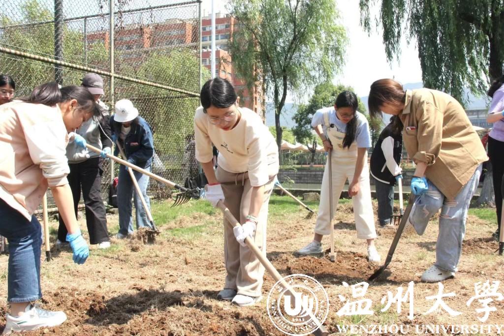 现场,同学们热情高涨,各司其责,互相帮助。清石除草、挥锹铲土、扶树填坑、踏土夯苗……炎热的天气蒸出了同学的汗水,虽然疲惫,但是亲身体验劳动实践带来的快乐可以抵去万千酸痛。一锄一耙,松土声与搬运声构成了美妙的乐章。待到黄昏日落之时,坐在杨柳荫蔽下,吹着微风享受劳作后舒适的休憩,每个人脸上都露出了满足的笑容。