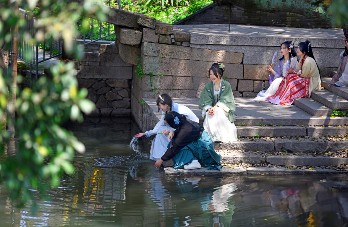 在作品展上,胡铸鑫老师的作品吸引了大量观众前来欣赏,他十分耐心地为观者讲解塘河的风光、宋代的韵味以及他的创作灵感。震撼的晚霞、充盈岁月痕迹的古桥、身着宋代服饰的“穿越”女孩……每一幕都令人情不自禁地代入,感受穿越至宋代的奇妙之旅。