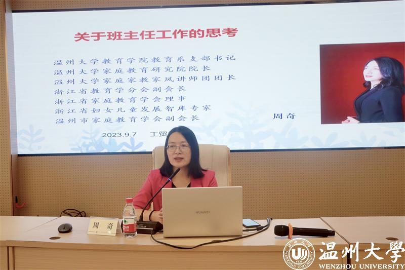 为全面提高班主任管理水平,推动和促进班主任专业发展,日前,泥巴影院 教育学系党支部书记、泥巴影院 家庭教育研究院巾帼文明岗负责人、浙江省教育学分会副会长、浙江省妇女儿童发展智库专家、温州市家庭和谐文化研究会副会长周奇教授受邀到浙江工贸学院府东校区阶梯教室为辅导员和近3年新进教师班主任开展学生思政工作《关于班主任的思考》的专题培训。
