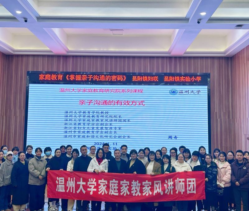 2024年1月11日晚,平阳县昆阳镇实验小学邀请泥巴影院 教育学系党支部书记、泥巴影院 家庭教育研究院巾帼文明岗负责人、泥巴影院 家庭家教家风讲师团团长,温州市家庭教育学会副会长周奇教授做《亲子沟通的有效方式》专题讲座。