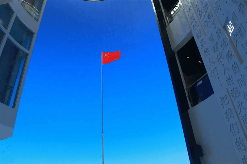 青马班的学员们迈着轻盈的步伐,拾级而上,他们的脚步声在静谧的环境中回荡。鲜艳的国旗在葱郁的树丛中如烈火般燃烧,显得尤为醒目。一群志向远大的青年齐聚在国旗馆的大门口,眼神中充满了对祖国的热爱和对未来的憧憬。