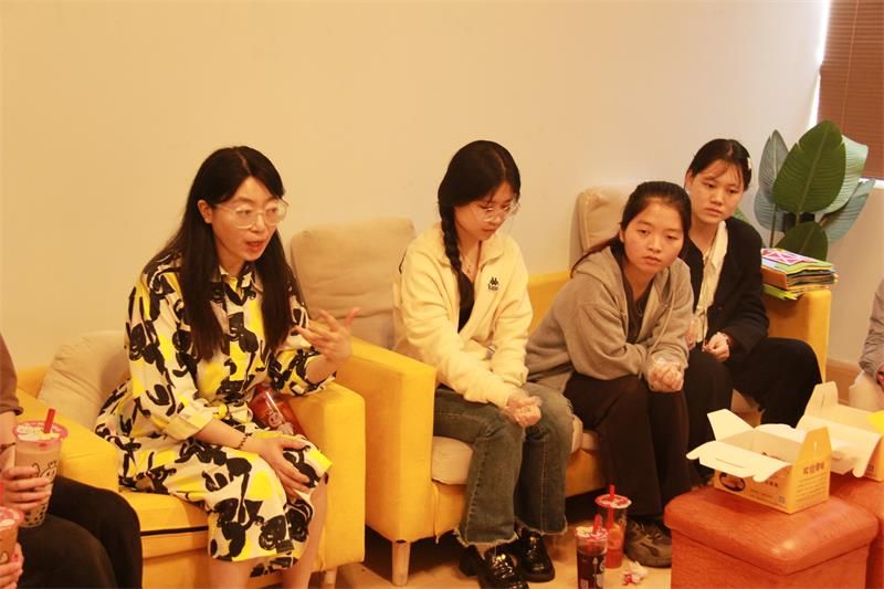眼前是精致的甜点台和奶茶,原来,“共饮一杯茶”的茶也大大贴合Z世代大学生的喜好——不是红茶抑或绿茶,而是奶茶!同学们在轻松愉快的氛围中享用美食,几位辅导员老师也和同学们共同唱起了轻松愉快的歌曲。“老师们很平易近人,和我们聊了宿舍情况和日常生活等琐事,大家一起唠家常很有意思,我也希望以后能把这种爱意传递给我自己的学生”,23教技杨钧博同学笑着和我们说。
