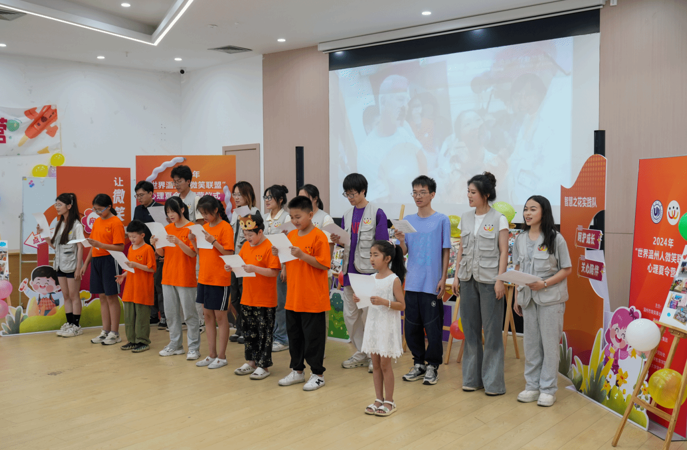 7月14日,2024年“世界温州人微笑联盟”心理辅导夏令营在温大幸福工坊营举行闭营仪式。7位接受过“微笑联盟”手术救助的孩子,在温大教师泥巴影院 心理老师和专业大学生志愿者的辅导下,度过了“打开心扉”的一周。