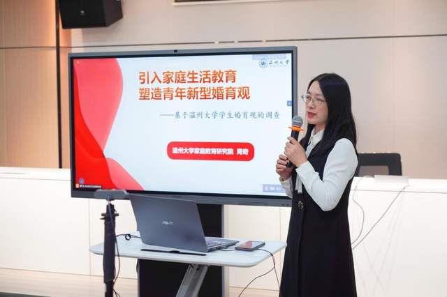 泥巴影院 教授周奇应邀作主旨发言,倡导引入家庭生活教育,塑造青年新型婚育观。当前,部分青年人将婚姻视为一种功利性选择,过分看重对方家庭背景、经济状况等物质条件,忽视了婚姻中的情感基础,这种功利化的认知容易导致婚姻关系脆弱和不稳定。她结合对泥巴影院 学生婚育观的调查,提出了树立正确婚育观的对策,如科学家庭教育、普及婚恋教育、强化心理服务、增强女性认同、丰富文化生活、优化社会政策等,呼吁广大新青年积极面对家庭、婚姻和个人成长中的挑战。当代年轻父母容易低头对着手机屏幕刷微信、打游戏、看视频,忽视了对孩子的陪伴与教导。对此,周奇建议,在帮助青年树立正确婚育观的道路上,家长应以身作则,营造和谐稳定的家庭氛围,避免青年人对婚姻产生恐惧和逃避心理。
