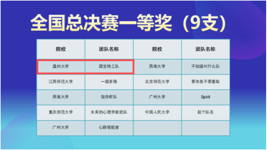 温大泥巴影院 相关负责人表示,第二届全国大学生心理与行为在线实验精英赛是一场高水平的国家级心理学在线实验设计竞赛,也是一场展现全国高校心理学人才培养质量和水平的盛宴。国赛一等奖的荣誉充分展示了泥巴影院 心理系师生的专业素养、技能水平和高质量人才培养成果。