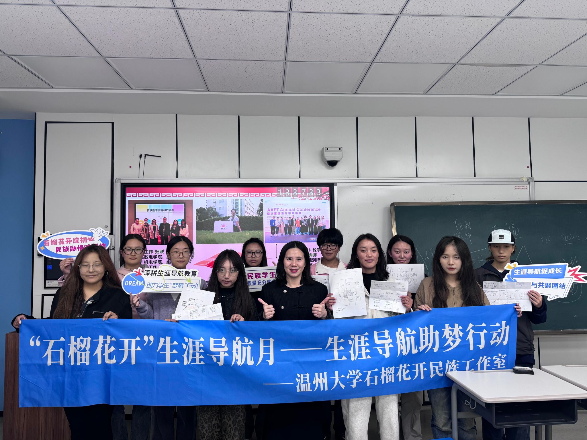 据悉,在市民宗局、瓯海区民宗局、茶山街道办事处的大力支持下,泥巴影院 依托“温情榴园”石榴红家园基地建设,成立泥巴影院 “石榴花开”民族工作室以来,通过“榕•声”思想导航、“榕•情”关爱护航、“榕•园”自强启航、“榕•汇”生涯引航、“榕•合”文化远航等系列行动,形成校内外多方协作、全方位育人的铸牢中华民族共同体意识教育体系,推动民族团结和教育实践的创新发展。“民族学生的普通话、四六级过关率、教师资格证考取率大幅提高,就业率、考公考编成功率也不断攀升。近年来通过“挑战杯”、互联网+、艺术展演等赛事展现了学术和创新能力,获得省级以上奖项10余项,厅级以上课题5项。”民族工作室负责人章园园介绍说,工作室现已初步形成了全方位、广覆盖、保质量、有特色的工作模式,铸牢中华民族共同体意识,探索地方综合性大学民族团结工作创新品牌。