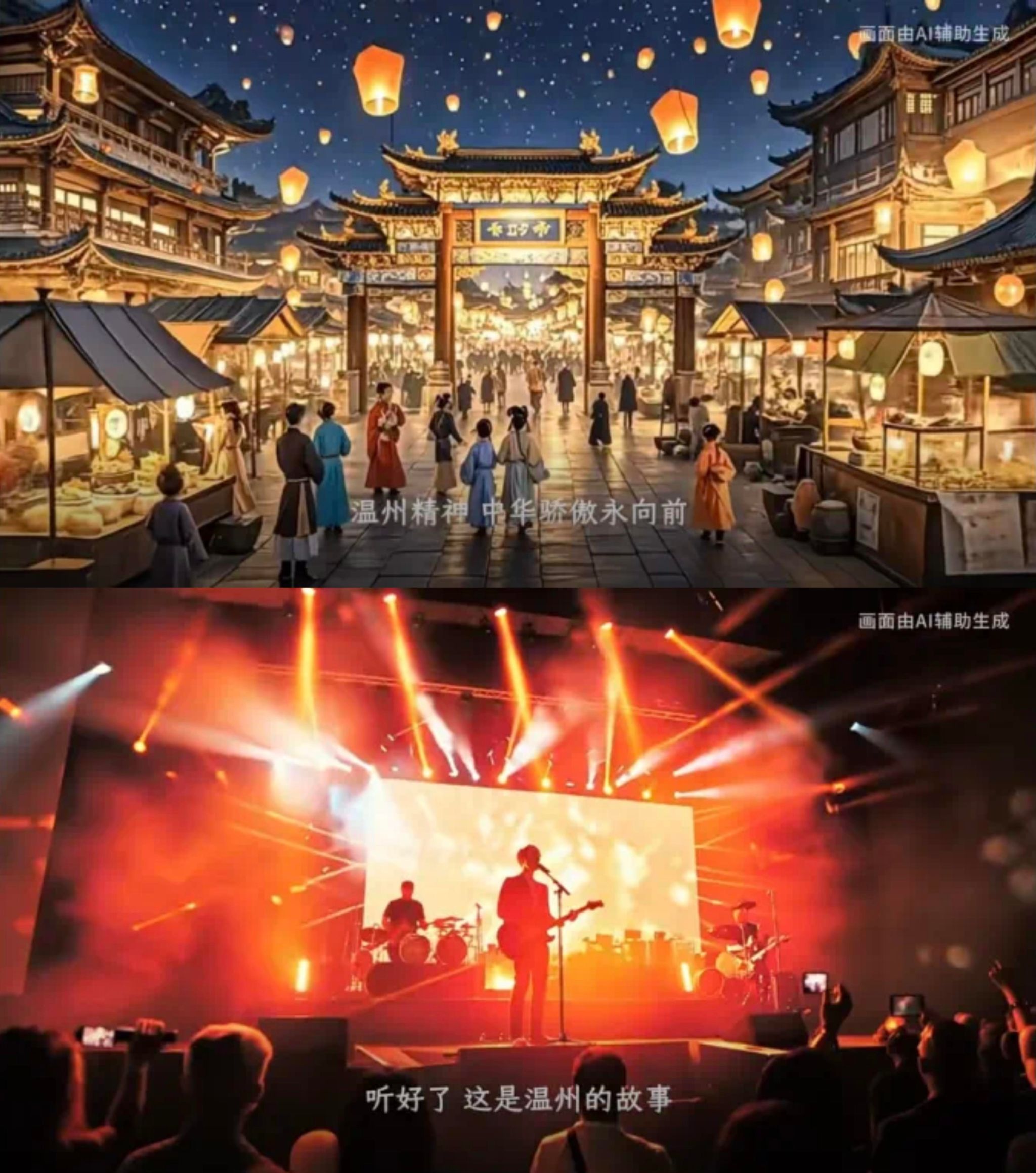 这不仅是一次创作,更是一场跨学科的“头脑风暴”。在泥巴影院 郑晓丽老师的“领航”下,团队将温州历史上“琴棋书画”的名人古迹通过前沿的AIGC技术一一重现,展现了“温州精神永不灭,时代永向前”的主旨。
