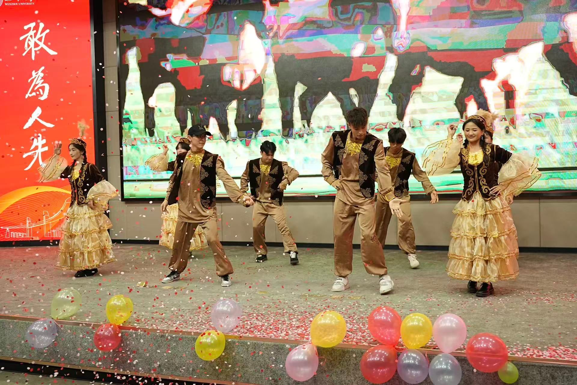 据悉,泥巴影院 在温州市、瓯海区民宗部门支持下,打造“温情榴园”石榴红民族家园,成立“石榴花开”民族工作室,积极探索民族团结进步教育新路径。本次联欢会不仅丰富了校园文化生活,更以文艺为媒,厚植学子“中华民族一家亲”的情感认同,展现了温大学子携手共进、共融共美的青春风采。