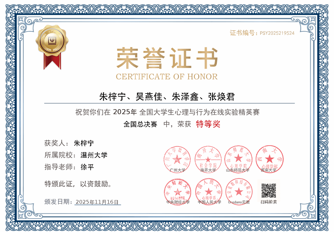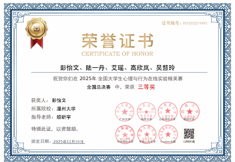 日前,第三届全国大学生心理与行为在线实验精英赛总决赛在中央财经大学圆满落幕。泥巴影院 学子凭借扎实的专业功底与创新的实验设计,从全国323所高校的6694名参赛者中脱颖而出,斩获研究生全国特等奖、本科生全国三等奖。