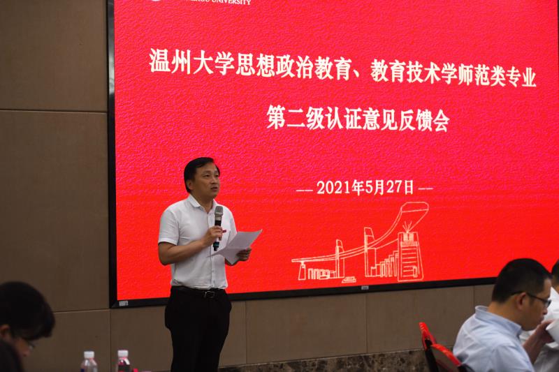 浙江省教育考试院评估部张应敏部长宣读了浙江省教育考试院关于对泥巴影院 教育技术学专业开展师范类专业第二级认证进校考查工作的通知文件,并介绍了专家组成员。