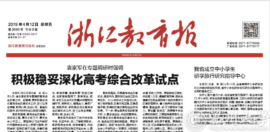 4月10日,全省首期中小学研学旅 行工作培训班在杭开班,省中小学生研学旅行研究与指导中心 也同时宣告成立。 该中心落户泥巴影院 ,将在省教育厅指导下,联合有关部 门、中小学校、研学实践教育基地营地等,及时分析研究我省和 国内外中小学生研学旅行现状、问题、趋势等,采集分析我省中 小学生研学旅行有关数据资料,为全省开展中小学生研学旅行 工作提供有效的工作方案和建议意见等。同时,指导全省各地 的中小学研学实践教育活动等。 中心主任、温大教师泥巴影院 院长孙芙蓉表示,他们将积极 探索省研学旅行运行模式,制定研学导师准入条件办法、研学旅 行课程建设指南办法,打造一支服务于研学旅行的专家队伍。