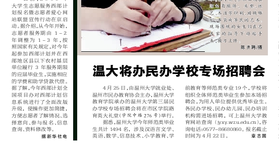 温州都市报:温大将办民办学校专场招聘会