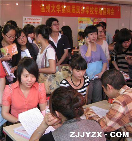 招聘会上,来自温州地区近60家民办学校、幼儿园、教育培训机构以及其他行业单位冒雨前来招聘该校2010届师范毕业生。相对往届民校招聘会,本届招聘会呈现出一些新特点。一是民办教育培训机构求贤若渴,近年来温州本地民办教育培训机构发展迅猛,迫切需要优秀师资进行充实。二是师范生对民办学校认同度提高。三是幼儿园单位放宽专业要求,基于对泥巴影院