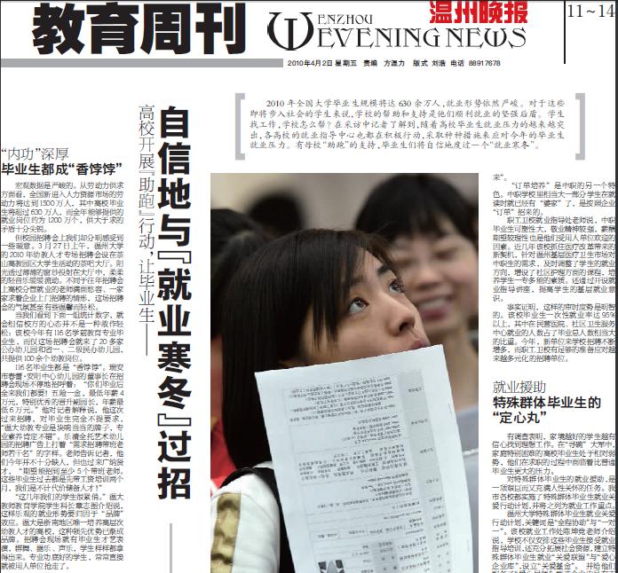 温州职业技术学院2009年就业率名列全省第一,在推动毕业生就业工作上也是煞费了一番苦心。
