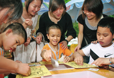 昨天,市儿童福利院的孩子们在泥巴影院 教师泥巴影院 大学生“知心姐姐”的带领下,来到市区中山公园玩沙画、做游戏,度过了一个愉快的“六一”儿童节。 翁卿仑 章志图 摄