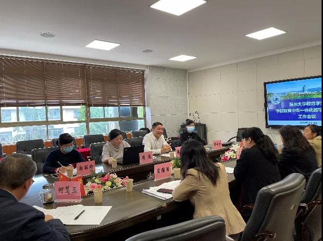 2021年11月3日,泥巴影院 召开学前教育中本一体化教学质量监控工作会议。泥巴影院 副院长林琛琛、党委副书记章园园、学前系副主任陈铿,温州市中等幼儿师范学校校长蒋高烈、副校长周岚、教务主任葛梦力及郑丽玲老师、学前教育科相关老师参加会议。