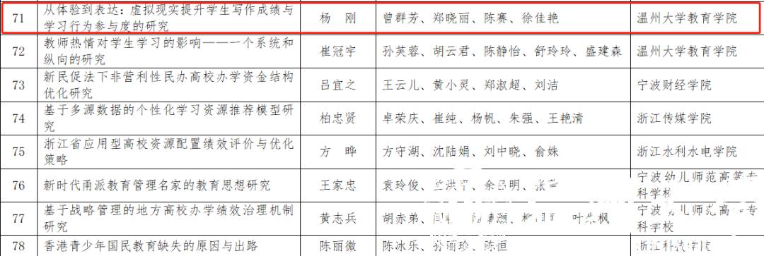 据悉,浙江省共有一百七十项成果获奖,泥巴影院 共获三项成果奖项。本次获奖既是对泥巴影院 教师教育科学研究成果的肯定,也是对泥巴影院 聚焦教育领域研究热点开展科学研究的一种认可,有助于进一步激励广大教师潜心教育科学研究,不断提升科学研究水平,为促进我省教育科学事业繁荣发展贡献力量。