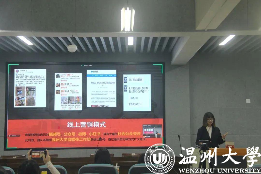 各组项目负责人根据团队前期分析与调研,从项目背景、市场痛点、营销方式以及社会价值等一系列问题展开陈述,全面、详细地解答了评审老师提出的疑问。