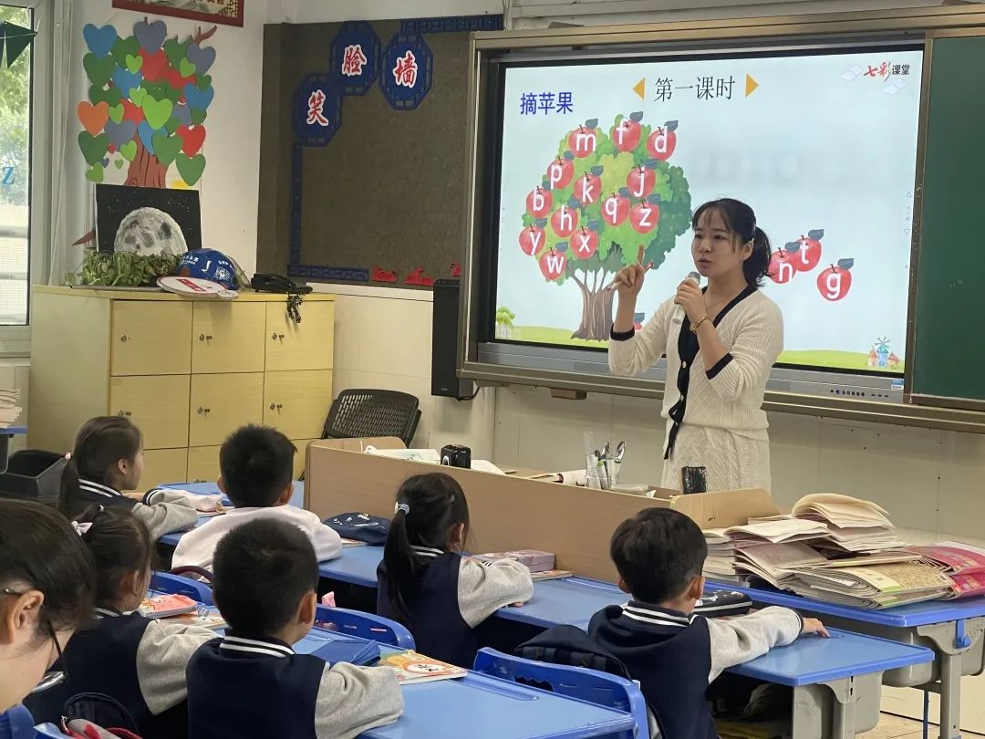 吴素文老师为我们带来的是一年级上册的《zcs拼音教学课堂》。吴老师舒展自然的教姿教态、亲切生动的语气带领着学生在拼音王国里畅游。学生在吴老师的指引下,学会了通过编口诀记住声母的读音,通过趣味手指操掌握声母的写法。吴老师还将声母与整体认读音节融合对比,让学生进行区分。
