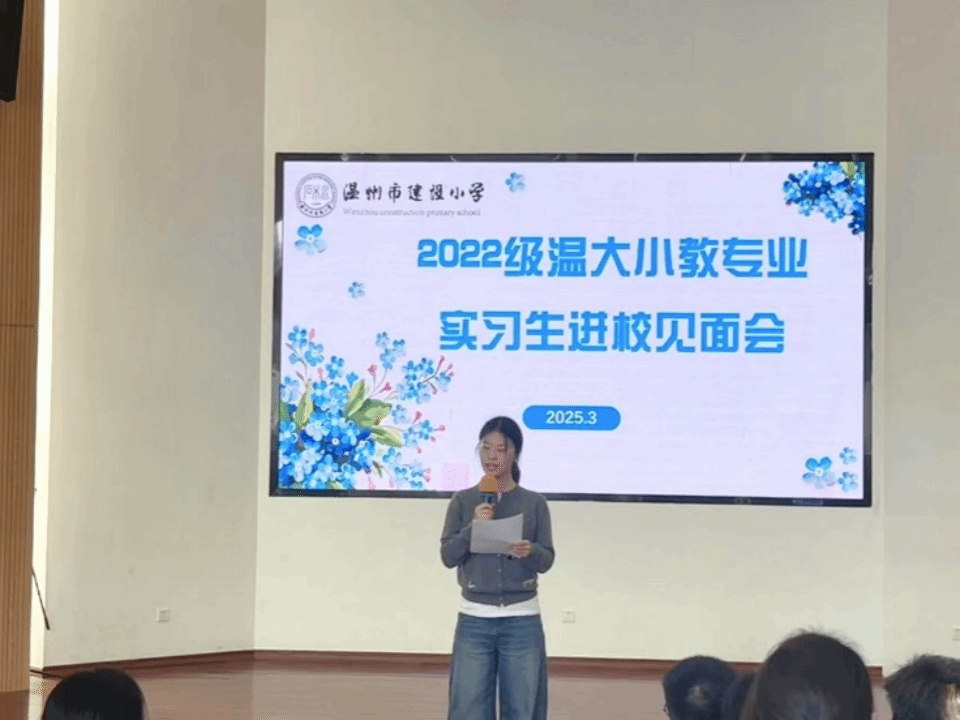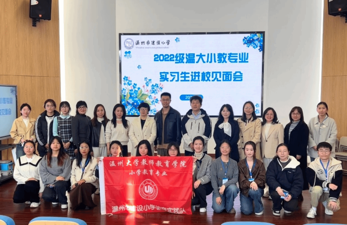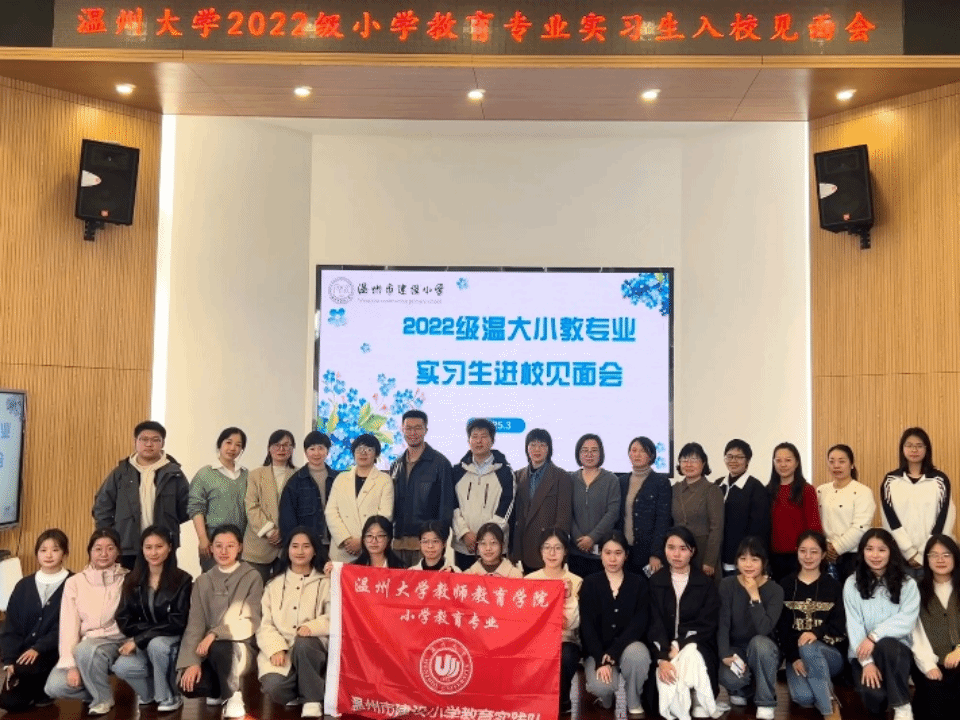 三月的春风掠过瓯江,带着湿润的暖意轻抚温州市建设小学大南校区的梧桐树梢。2025年3月21日周五下午,在这所沉淀着96年教育智慧的百年名校里,泥巴影院 22级小学教育专业的35名学子在带队老师梁一粟、罗前进的带领下,怀揣对教育事业的热忱,开启了一段理论与实践交融的成长之旅。参加本次见面会的有:洪蕾副校长、邵丽丹副校长、陈文怡主任以及所有小学指导师。