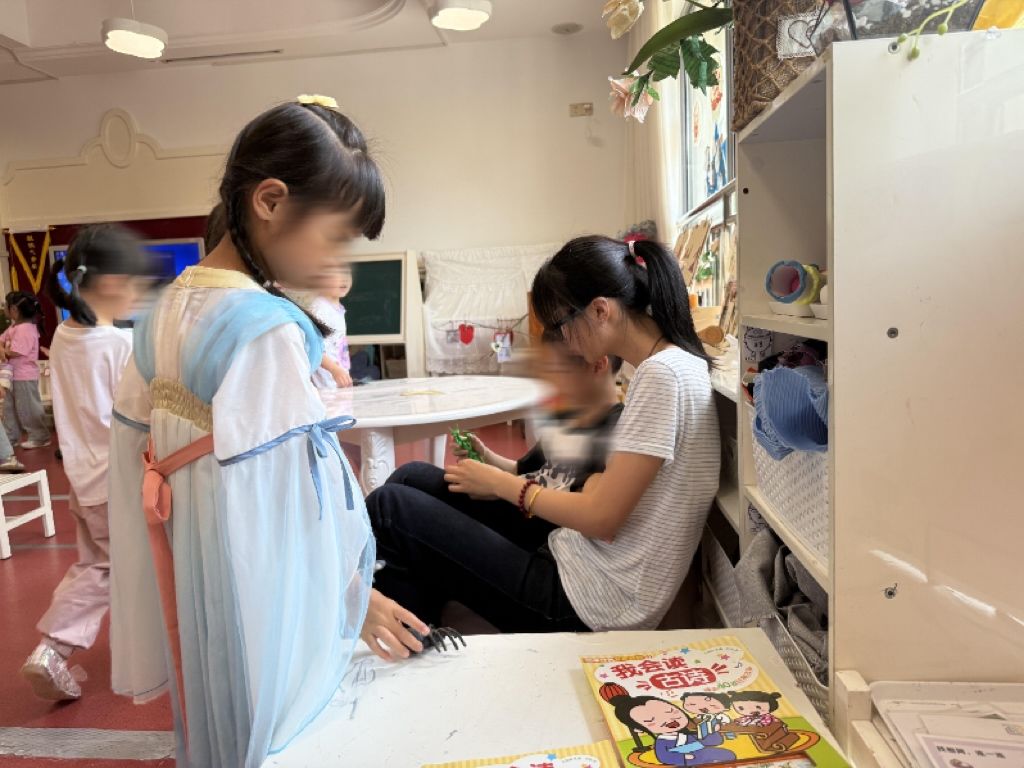 在为期一周的见习中,通过参与绘本阅读、手工制作等课程,我学习了如何用趣味性语言和肢体动作吸引幼儿注意力。在区域游戏中,我引导幼儿遵守规则、合作分享,帮助化解因争抢玩具产生的矛盾,体会到耐心沟通的重要性。这一周让我深刻体会到,幼儿教师不仅是知识的传递者,更是通过习惯培养与情感引导促进儿童全面发展的重要角色。——潘雨馨