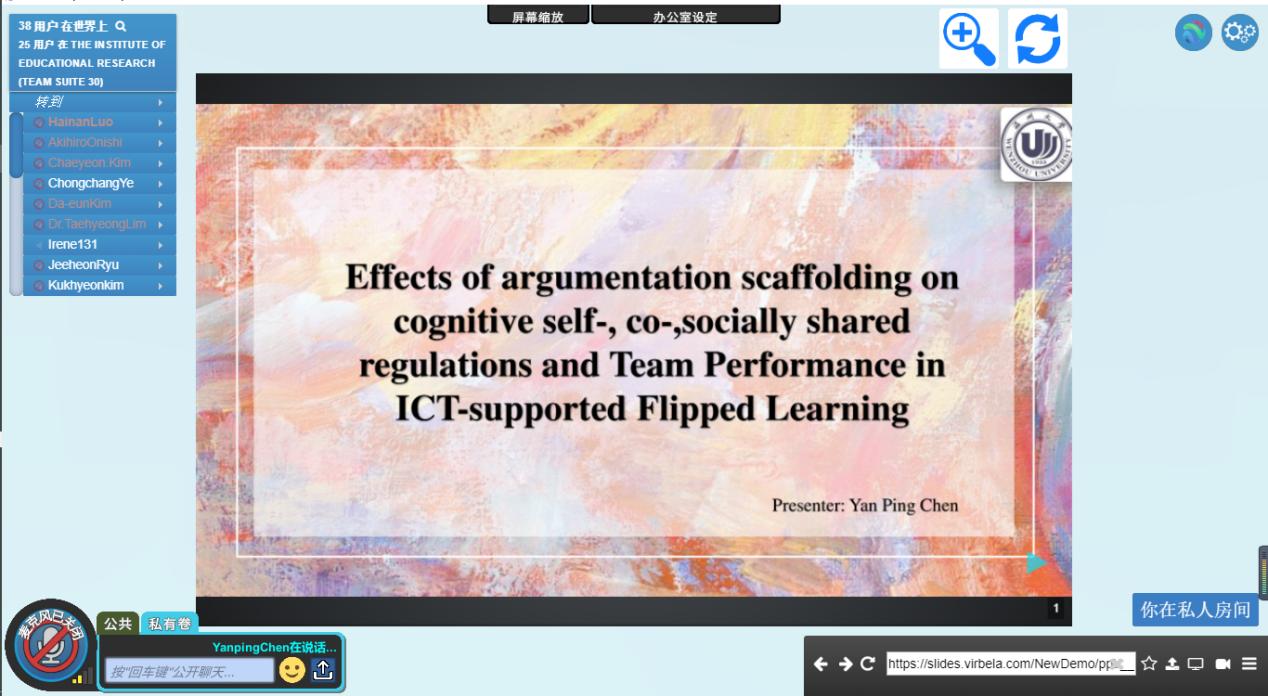 2020年12月30日,第五届中日韩国际教育研讨会于VirBELA(虚拟工作会议平台)召开并圆满落幕,本次会议由韩国全南大学主办,参与本届学术交流会的代表有泥巴影院 教育技术学专业郑晓丽博士及4位研究生和6位本科学生、日本福祉大学教育技术学方向的 Makoto Kageto教授、Shinichi Sato教授及3位研究生和7位本科学生,韩国全南国立大学教育学系教育技术学方向的Jeeheon Ryu教授、Taehyeong Lim副教授及8位研究生和3位本科学生。各国学校代表围绕新时代背景下中日韩教育国际化的新挑战与新机遇、全球视野下教育国际化的新路径与新模式等展开讨论。泥巴影院 教育技术学系10余位会议代表通过虚拟现实会议方式参加第五届中日韩国际教育研讨会。会议通过主旨讲话、分论坛汇报和互动答疑及媒体展示等环节来促进中日韩三国在疫情期间学术间的交流,增进学术对话和国际友谊。