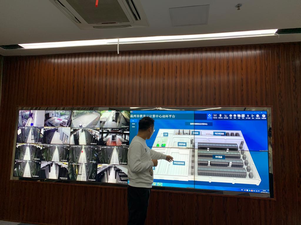 教育大数据云计算中心:在参观温州市教育大数据云计算中心时,老师向我们细心地讲解了云计算中心的各个组成部分,分别是:瓶组间、支配电室、学校变配电室、监控室、电力电池室、IDC机房。同时,19教技的同学们感受到了大数据的奥秘。