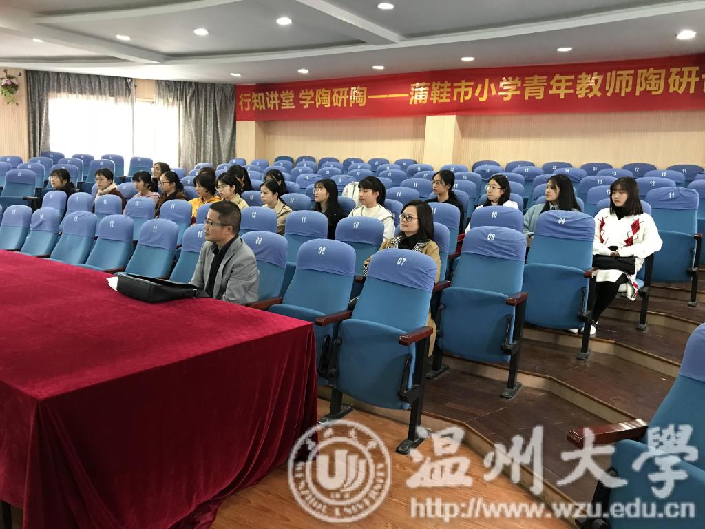 蒲鞋市小学见面会议程总共分为四项,首先由林爱微老师代表蒲鞋市小学向前来见习的学生们表示欢迎,并向同学们介绍了蒲鞋市小学的概况: 历史悠久、师资雄厚,是一所具有鲜明办学特色的实验性、示范性窗口学校。学校现有龟湖、桥儿头、黎明、双井头四个校区,校区之间的联系紧密,经常会一起组织活动。接下来林老师重点介绍双井头校区,双井头校区名师荟萃,特别是数学教研组曾获得温州市优秀教研组的荣誉称号。数学教研组中老中青三代集合,学习氛围良好,给新教师的发展提供了肥沃的土壤。关于办学特色,双井头校区的特色主要体现在弟子规和跆拳道两个方面。弟子规体现了学校在德育文化建设上所做的努力,意在培养学生良好的行为习惯,同时为了让家长参与到学校的德育文化建设,学校从2014年11月起,开展“幸福之家读书会”,至今已开展到第18期。跆拳道课程是学校的体育特色项目,一二年级的班级每周都会开一节跆拳道的拓展课。所以双井头校区也成为了鹿城区青少年跆拳道基地。可以说弟子规和跆拳道充分体现了学校全面育人的教学目标。