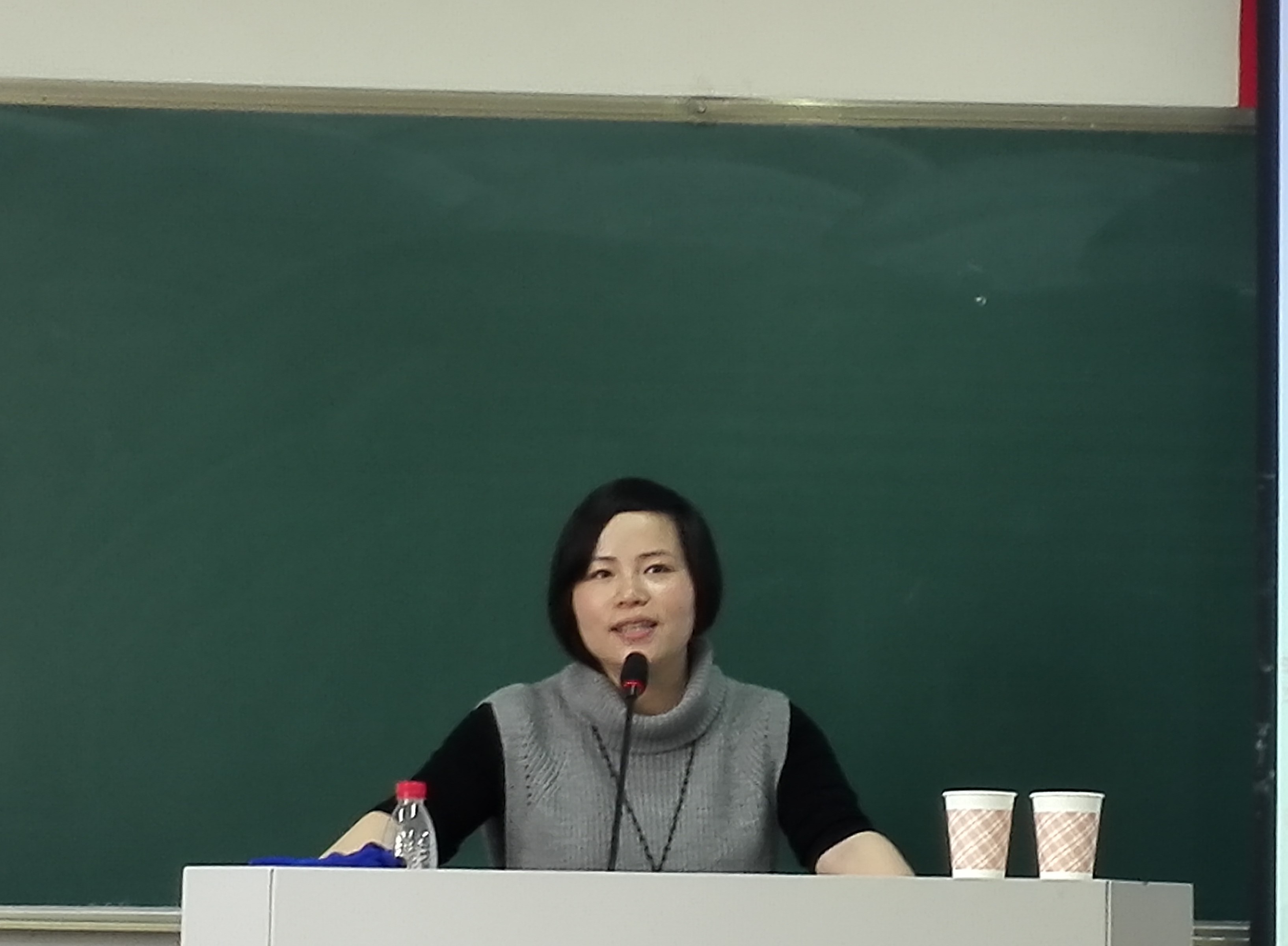在南9B-303开展了小教系的名师大讲堂活动。本次活动邀请到了瑞安市虹桥路小学教师、温州市语文名师李海华老师。本次讲座以“研发读写课程,争做品牌教师”为主题,向15级小学教育语文方向的同学讲述了如何做一名不可替代的语文老师。本次活动由谭莉老师主持,小教工作室承办。