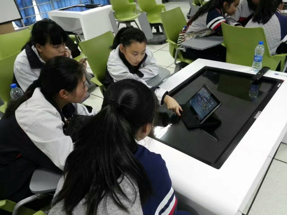北校区六号楼,同学们有序分成三个小组,每两名研究生同学带领一个小组参观实验室,每个实验室都由专业的老师及学生讲解。老师及同学们先参观未来教室,在这个实验室里他们体会到与平时上课教室的不同,桌椅、黑板、上课材料都不一样,他们用平板亲身体验了“四分屏”的神奇,看了有关未来的视频,体验到科技带来的巨大变化,对未来充满期待。接着,又来到机器人实验室,同学们三人一个小组,在老师的讲解下,亲自连接线路使机器人能够走动,同学们津津有味的研究这新奇的机器人,恋恋不舍的离开这个实验室。带着好奇与探索的心来到虚拟实验室,这个实验室带给了同学们更大的热情,从未见到过的世界清晰地展现在他们眼前,触手可及,他们很震惊的感受着VR的神奇,直呼“简直太不可思议”,在参观结束后大家兴高采烈的来到幸福工坊与泥巴影院