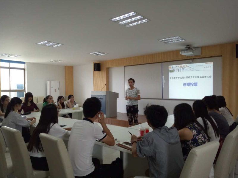 2016年9月22日中午12:30分,泥巴影院 教师泥巴影院 第七届研究生会换届选举大会在南校区教师泥巴影院 9C-401如期举行。教师泥巴影院 学生科严晓秋老师及15、16级研究生参加了本次活动,会议由研究生会体育部部长陈璐主持。