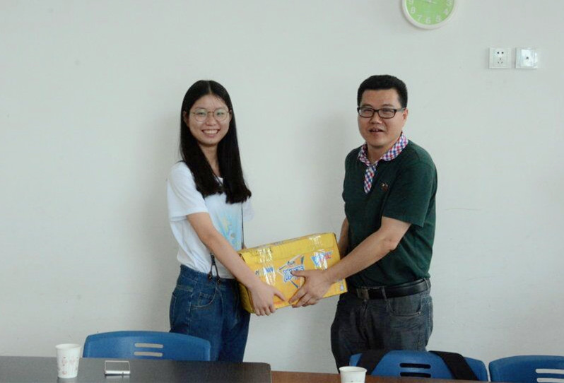 的胡瑜副院长(实践队指导老师)和学院辅导员严晓秋老师。老师给我们带来了夏日清凉的西瓜和冰红茶,对我们公益实践活动给予了大力支持。虽然物品并不贵重,但却给予了我们很多能量和前进的动力。老师对我们进行了简单但不乏热切的关怀慰问,大家围桌而坐,向老师们汇报了自己的实践心得。队长首先发言:“今年心翼主要分成三只小分队,小银河分队的同学主要负责的是教学这一方面,协助老师上课,帮助孩子们进行康复训练。在小银河的几天里,队员依照安排有条不紊地展开活动,积极完成实践基地老师分配的任务。我们不仅在教孩子学习,自己更是在进步,感谢队员和老师的付出。”胡院长也表示,只有真正参与到活动中去,有所触动,有所收获,才算是达到实践的目的。队员们也积极发言,纷纷表示自闭症的孩子虽然特殊,但却又与正常的孩子无异,上帝给这些孩子关了一扇窗却会给他们打开一扇门。自闭症的孩子们需要这个社会更多的关心与支持,照顾这些小天使让我们乐在其中忘却疲倦。爱星缘实践小分队也在欢身笑语中展开了一系列的活动。他们帮助的对象是一帮幼龄自闭症儿童,他们虽然有些行为怪异不擅长与人交谈,却不乏天真可爱。实践队的成员们都把他们当做普通的小弟弟小妹妹一般呵护对待。领着孩子们一起上音乐课、做操、完成手工作业。都说快乐是相通的,当这帮孩子的脸上洋溢出开心的笑脸,我们的队员变能感觉到无比的充实与幸福。我们想和这些折翼的小天使分享快乐传递爱。