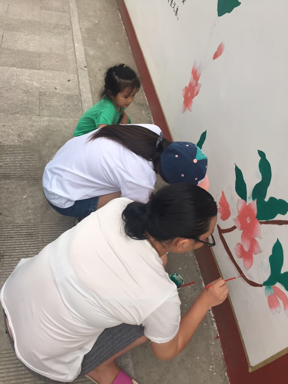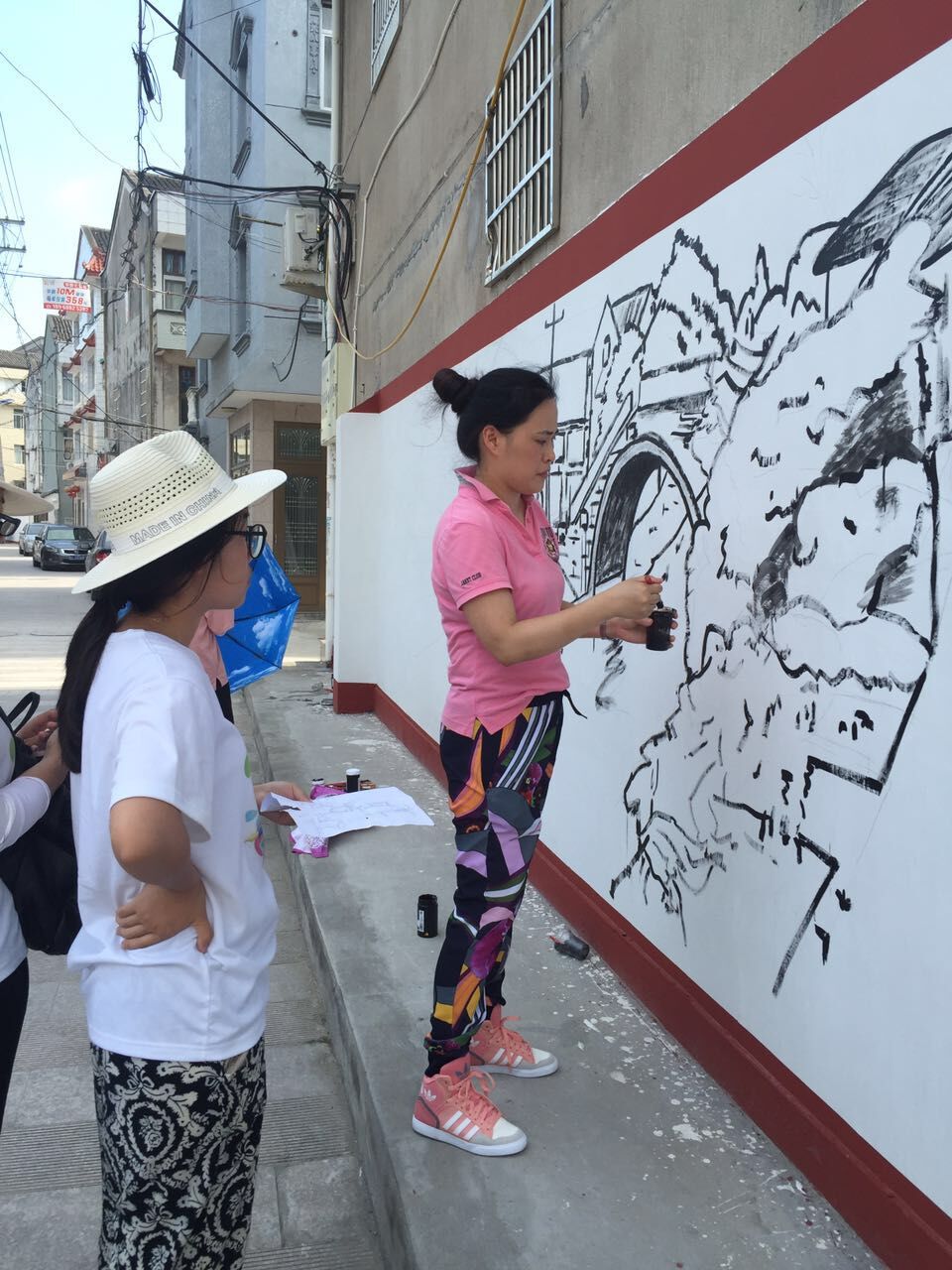 下午休息过后,我们青绘实践队员们又元气满满地投入到墙绘当中去。在陈铿指导老师的帮助下,我们的效率明显又提高了很多,而且从陈铿老师这儿学到了非常实用的绘画技巧,对于我们接下来几天的绘画帮助非常得大。经过这几天的绘画,我们更加的有经验,画画也越来越上手。陈铿老师也非常地尽职尽责,从下午开始就帮着我们一起绘画,一直到晚上七点多才吃晚饭,这让我们既感动又佩服。在吃饭的间隙,老师也非常亲切地与我们交流经验。吃过晚饭后,我们就抓紧时间打开投影进行描线,即使晚上蚊子一个劲地咬我们,但是我们青绘实践队员们毫无怨言,依旧一丝不苟地勾勒着每一条线,彰显了我们教师泥巴影院