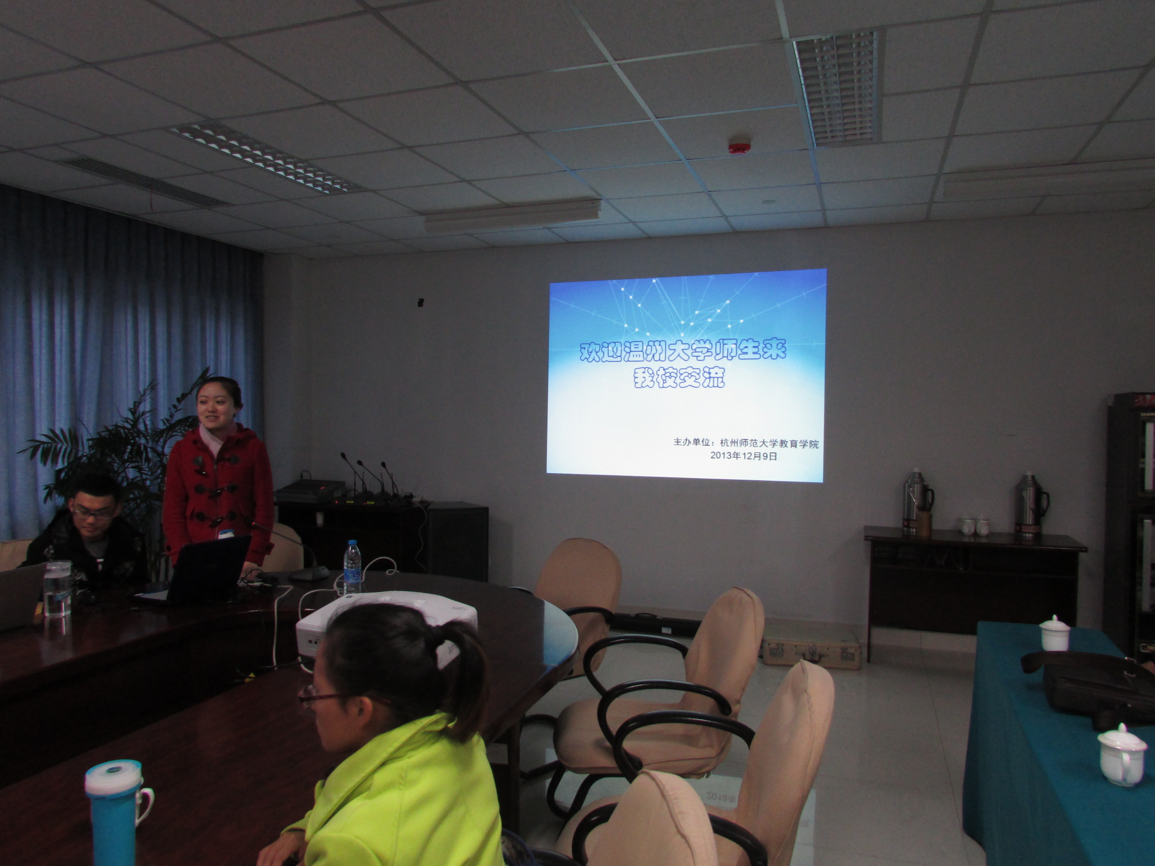 进行2013年课程与教学论研究生校际学术交流,杨欢耸副院长、楼利高老师、焦方瑞老师以及杭师大泥巴影院