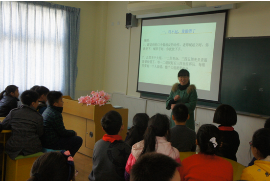 接着,彭小明院长、盛建森老师、胡孙贵、陈秋珠老师一同来到教室听课,检验实习生的实习成果。百里路小学钱起建校长、李碧副校长以及心育组张捷、林晨欢、柳洁、王蓓、范尔欢等老师,一同聆听了实习生蒋霞在一(1)班上的《我能做个好听众》和实习生胡婷婷在五(4)班上的《做错事之后……》两堂公开课。各位领导和老师对这次实习成果的展示给予了高度评价,肯定了实习生在实习期间的进步和努力以及实习指导师的辛勤付出。