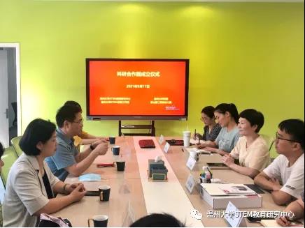 参观过后,在幼儿园会议室举行了泥巴影院 STEM教育研究中心与泥巴影院 附属茶山第二幼儿园共建“科研合作园”的成立仪式。这是高校研究机构与幼儿园深度合作开展幼儿STEM教育研究的创新之举,也是理论与实践结合促进幼儿STEM教育积极发展的双赢之路。