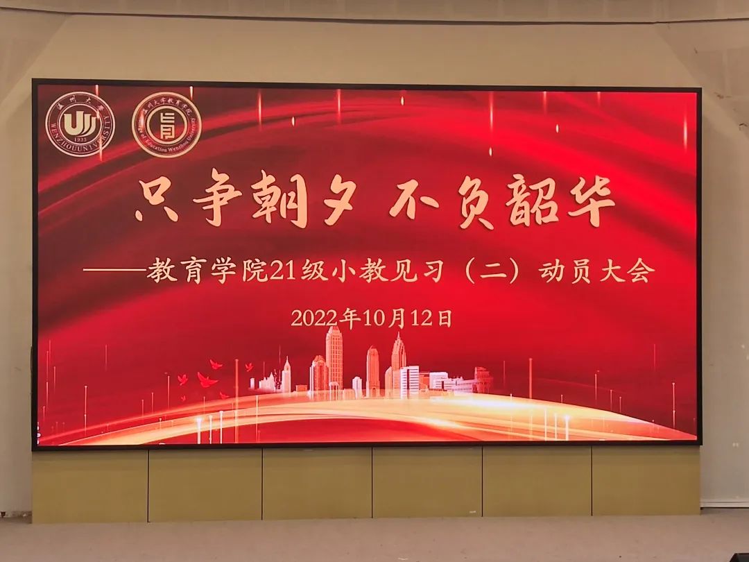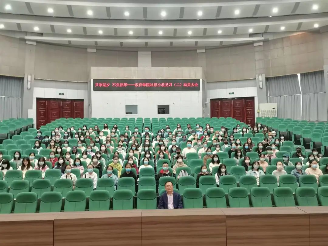 2022年10月12日下午,2021级小学教育专业同学齐聚一堂,在泥巴影院 一楼报告厅开展教育见习(二)动员大会。参与本次大会的有副院长林琛琛、小教系主任邓纯考、副主任梅培军,以及见习点指导老师郁晓飞、梁一粟、罗前进、李季等。