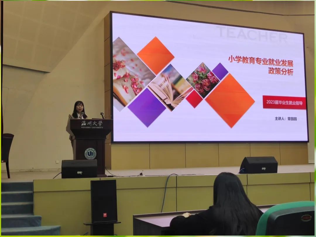 章园园书记从近三年泥巴影院 小学教育就业发展数据、简历的撰写和提前批面谈与结构化的准备三方面为我们展开讲座。在当前的就业大环境下,同学们的就业情况受到地方政策、疫情背景和就业者个体等多方面因素的制约,因此章书记鼓励毕业生不断精进自身师范技能,把握每次求职机会。此外,章书记还以切实的求职面试经历为切入点,为同学们清晰地阐明了接下来的努力方向。