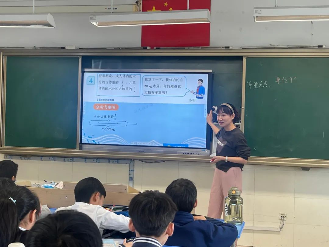 叶佳佳老师在六(3)班为我们带来一节六年级上册数学课《分数除法解决问题》。课堂中,叶老师十分注重作图的规范化与思维拓展。通过展示学生优秀的和具有典型错误的作品,引导学生规范作图,以直观而清晰的线段理解题目和解决题目。同时,叶老师创设的问题里还经常性追问“你还有什么想法”等,以自然的语调精炼且巧妙地打开学生的拓展性思维,培养了教师与学生的默契度,课堂效率显著。