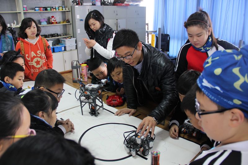 6号楼教师教育实验中心参观体验。在实验中心老师的带领下小学生们分别参观了乐高机器人实验室、 未来课堂实验室、教育机器人实验室和小学科学实验室。