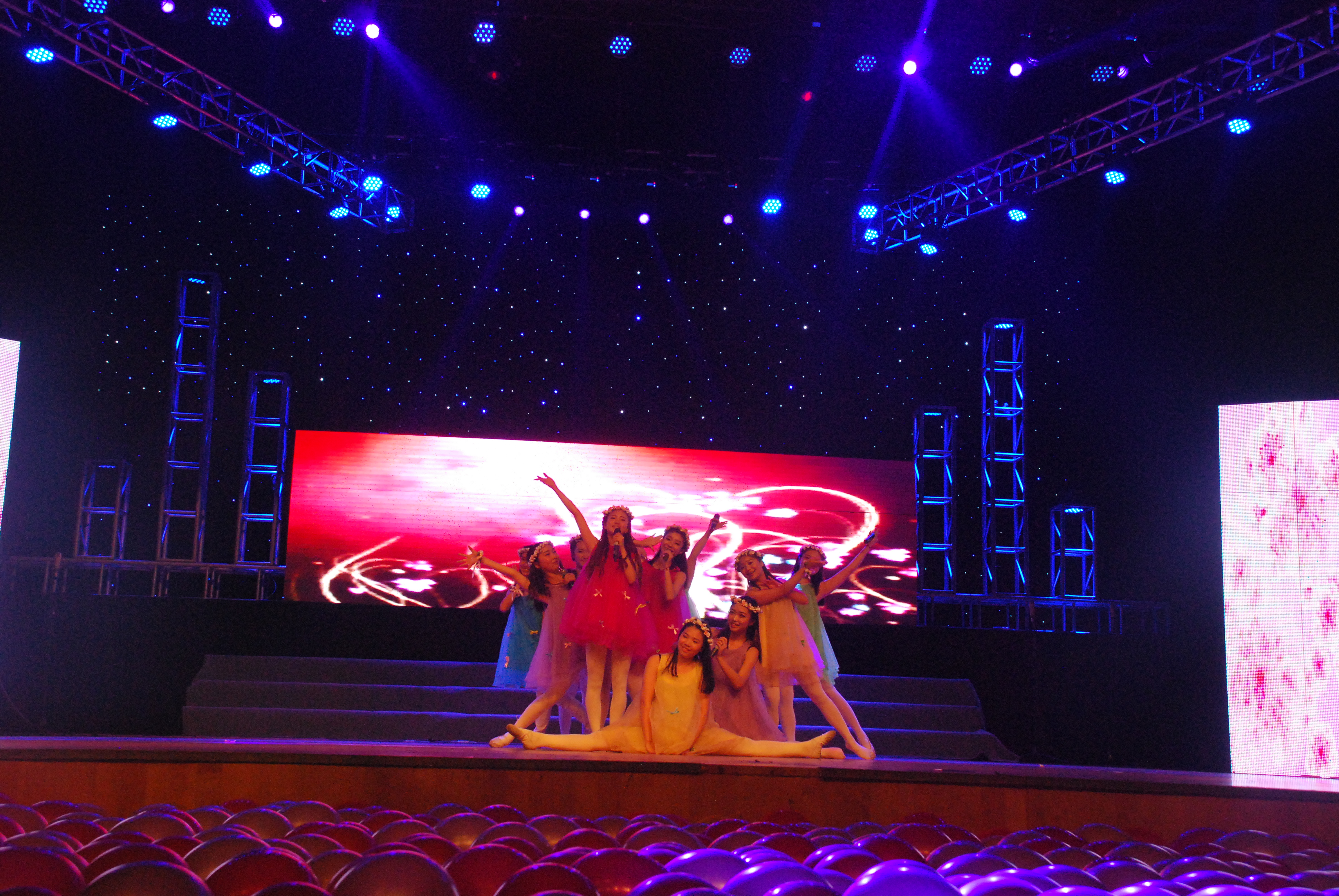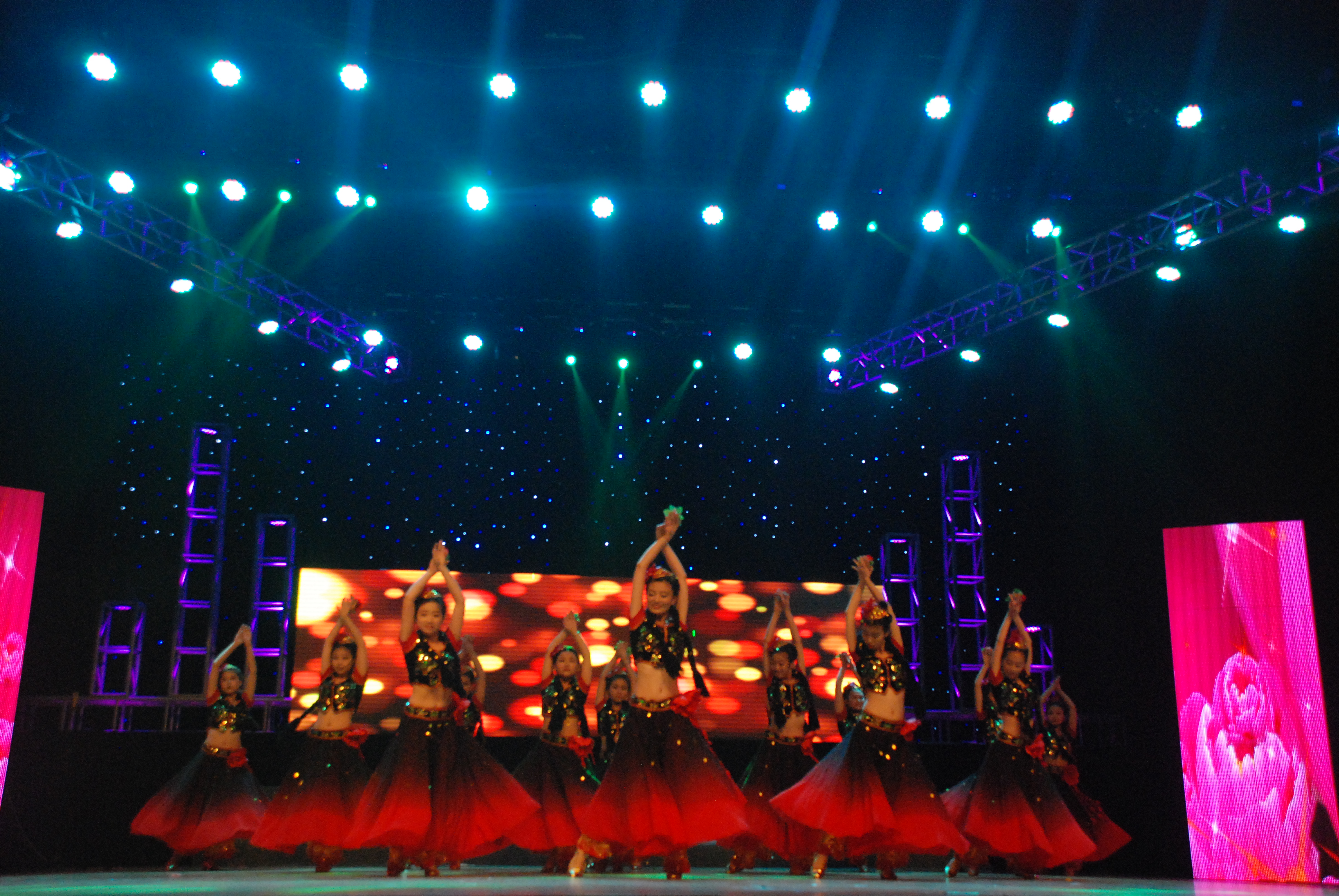 在今晚的舞台上,有10位美丽的花仙子一展歌喉,带大家进入美丽的童话世界,花花世界的美妙让大家沉溺其中;有精明睿智的黑猫警长带着小白猫帮助山羊奶奶,巧施妙计,抓住了偷粮食的老鼠,还告诉了我们碘与淀粉间的奇妙反应;有头戴红色花朵,身着维吾尔族的服饰,充满异域风情的舞者,带大家领略《花儿为什么这样红》;有一朵芦花,傲然挺立着,时而淡雅,时而高亢的歌声仿佛让这朵洁白的花儿远离尘世,一曲醉人;还有一群蒙古族姑娘们,带着草原的气息,一步步踏向舞台,她们由静到动,再恢复至庄严肃穆,整个场面十分壮观。