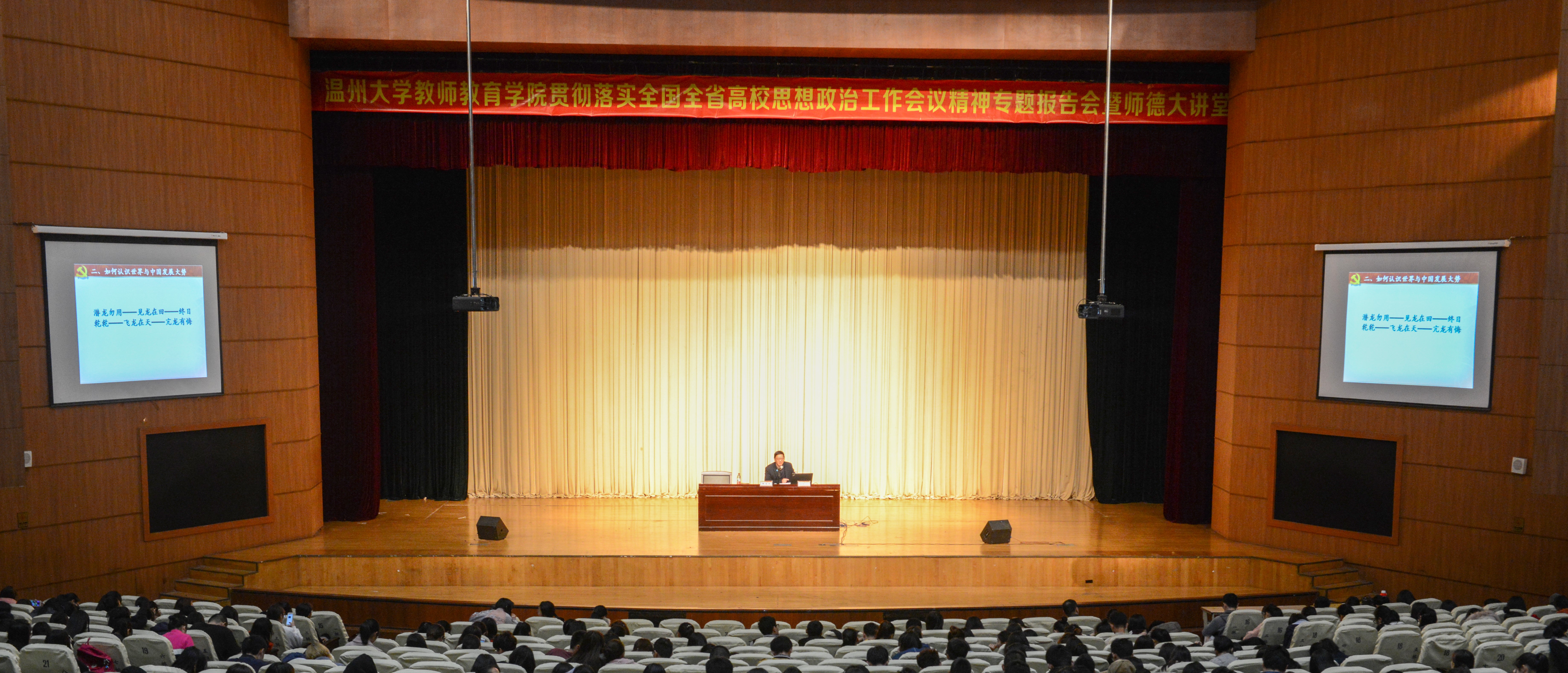 在育英大礼堂大学生理论学习与形势政策报告会,学院院长郑信军、学院党总支书记杨立淮、党总支副书记杨丽君、学院学生科辅导员和全院大一大二级学生参加报告会,郑信军院长作《树立四个正确认识,践行青春使命梦想——全国全省高校思想政治工作会议精神辅导报告》,报告会由学杨立淮书记主持。